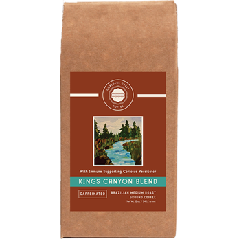 Kings Canyon Blend is a rich, medium roast caffeinated, Brazilian coffee that is ground to perfection and includes the powerful immune supporting supplement known as Coriolus Versicolor. This coffee is roasted, ground and shipped much faster than most coffees found in stores and at your local coffee house ensuring what we believe to be the freshest coffee flavored experience you can have. Every hand-packed bag is filled with the exceptional coffee you deserve. You will be surprised by how smooth and light it is on your palate!