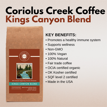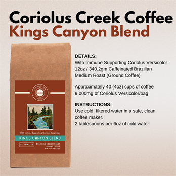 • Coriolus Creek Coffee Kings Canyon Blend Caffeinated with Immune Supporting Coriolus Versicolor